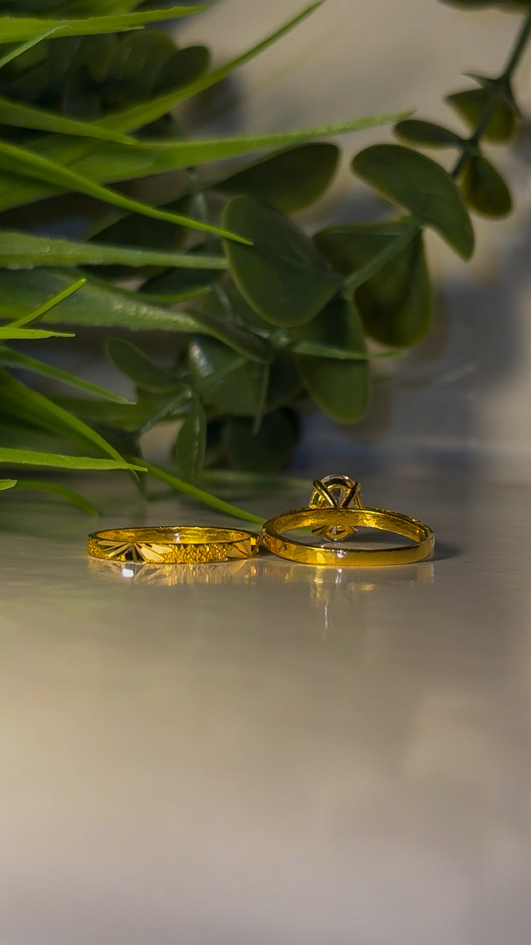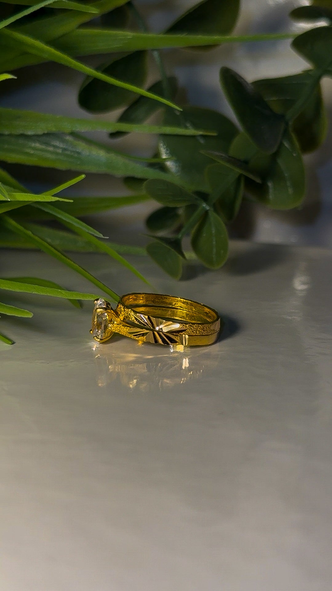 - Detailing: Intricate diamond cutting on both rings for extra brilliance